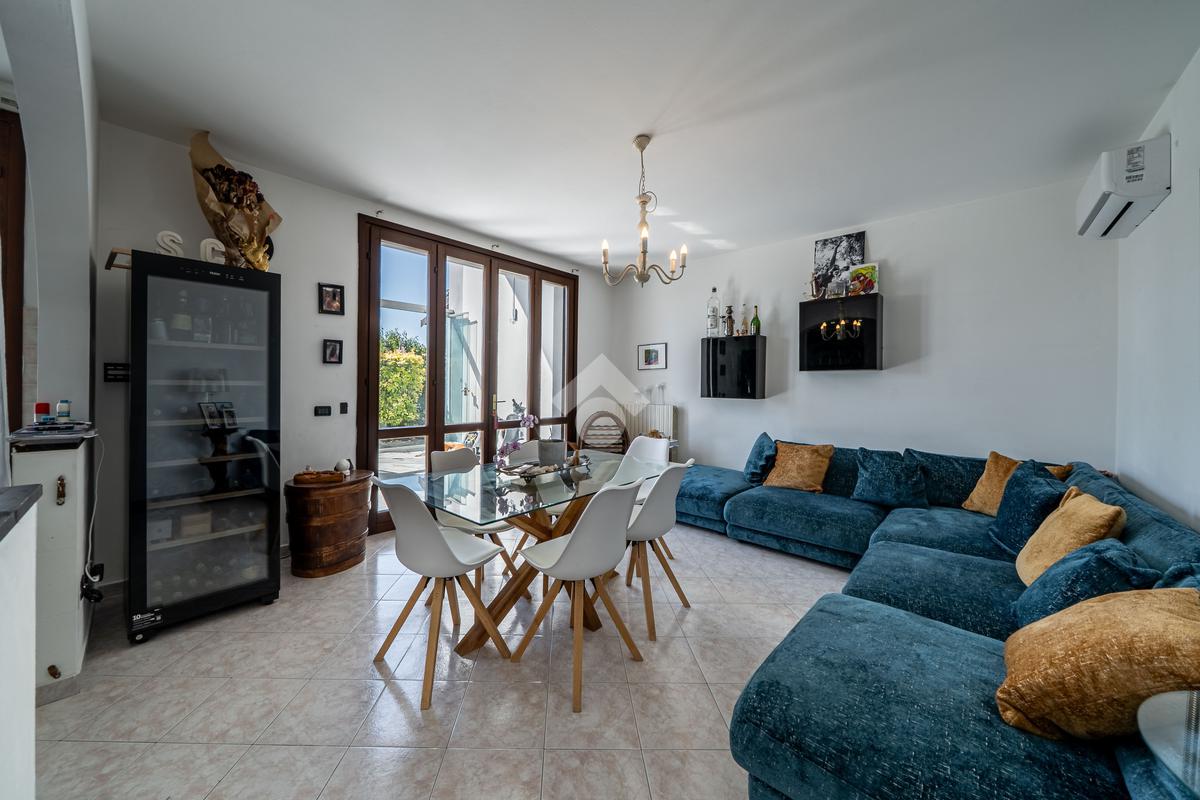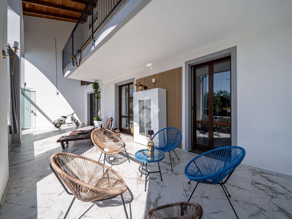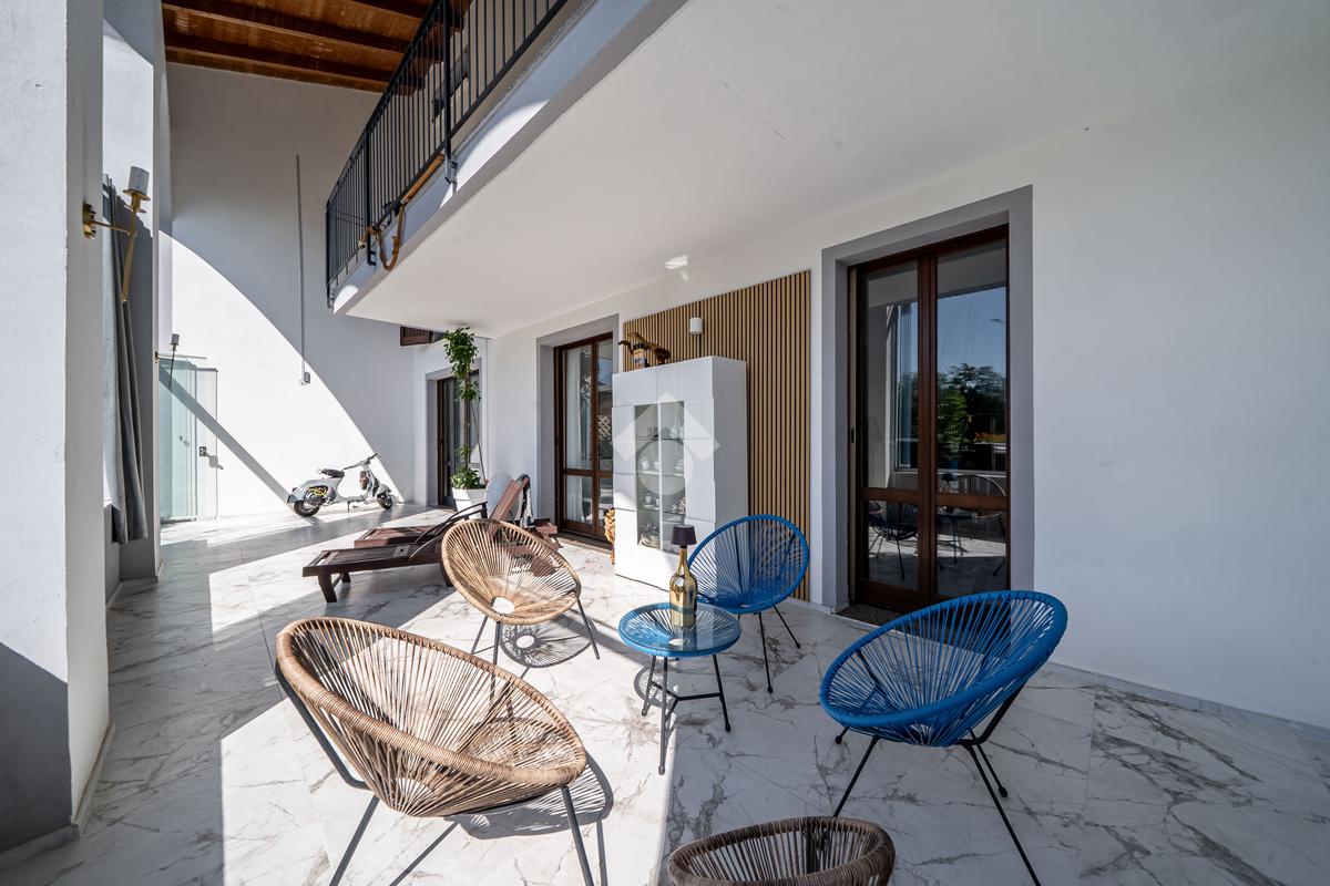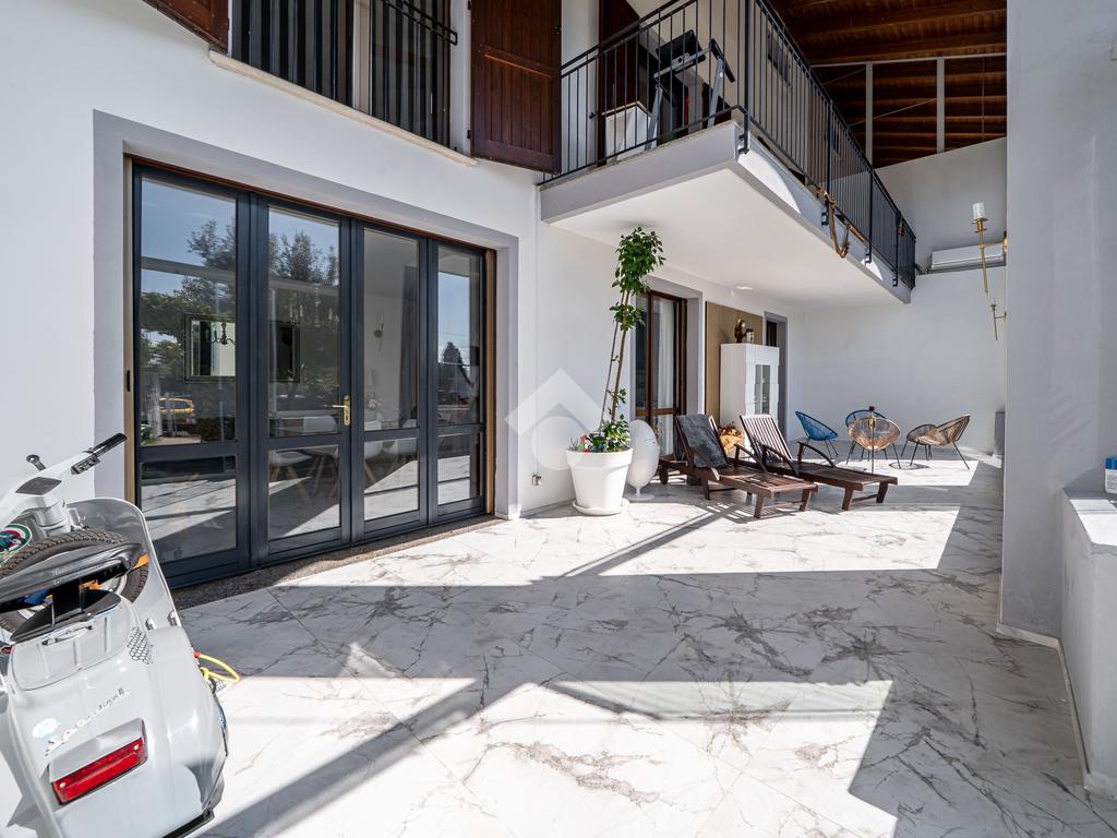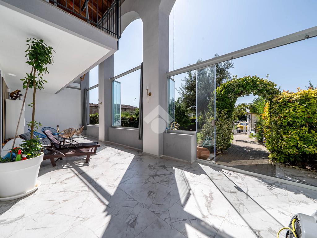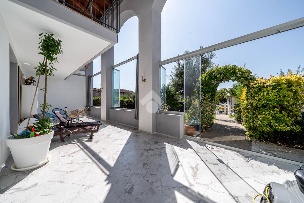 L’ingresso è indipendente, attraverso un giardino privato curato nei minimi dettagli si accede alla zona giorno passando per un portico vetrato di recentissima realizzazione, una vera chicca, uno spazio elegante e funzionale, riscaldato, climatizzato, con doppio volume e chiuso da ampie vetrate, perfetto da vivere in tutte le stagioni.