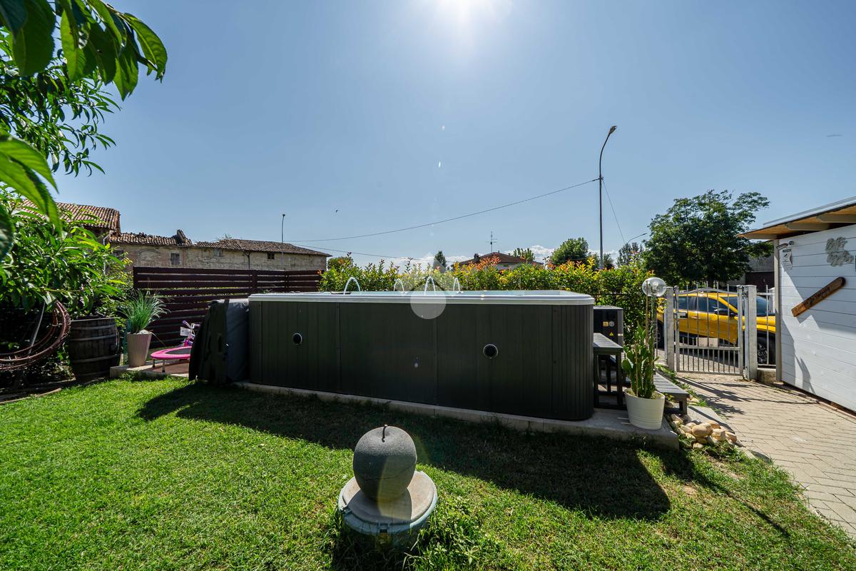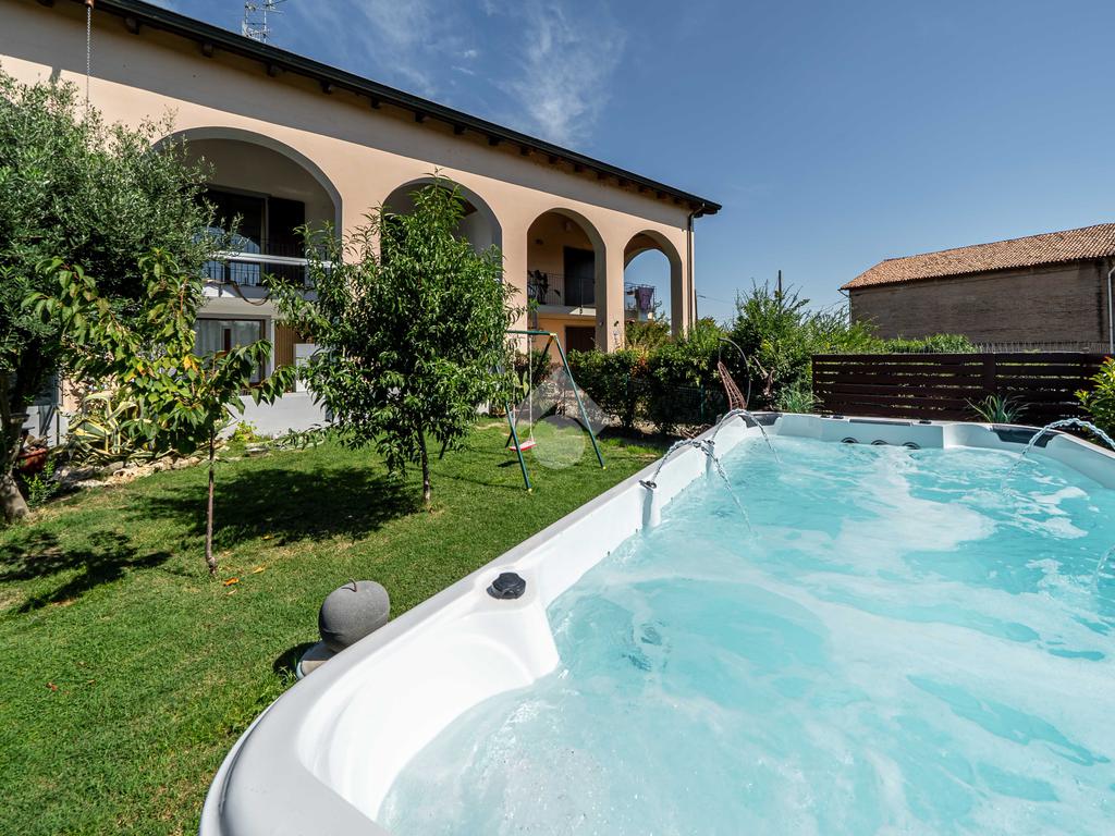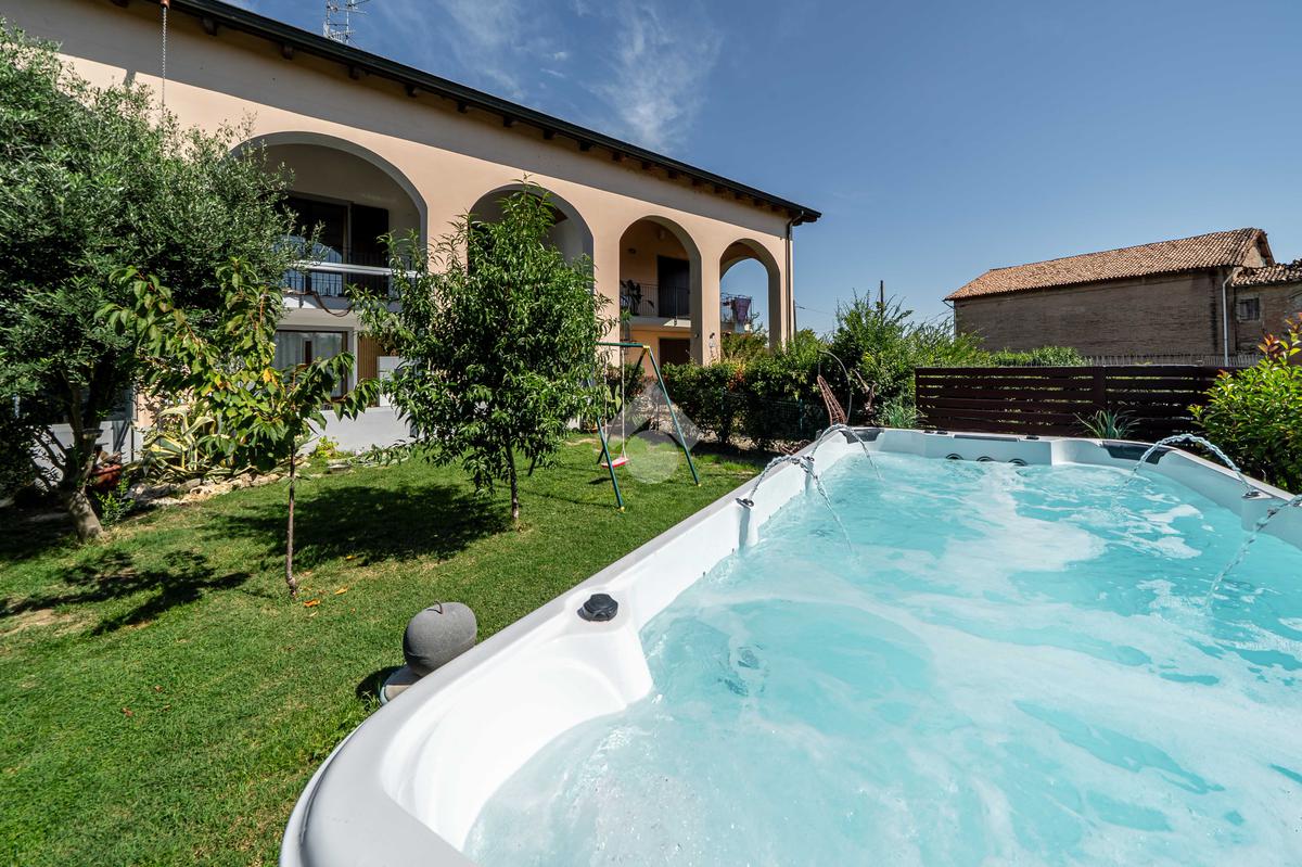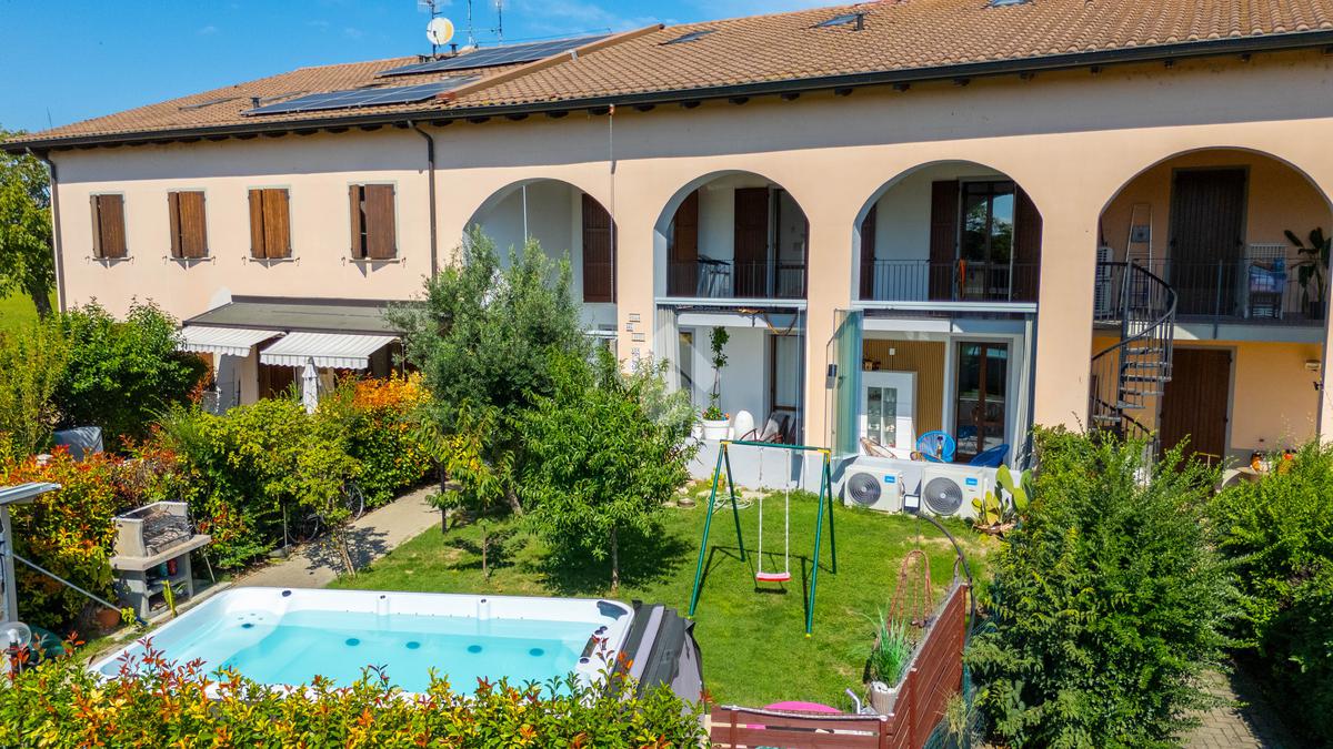 Il giardino privato è uno degli elementi che rendono ulteriormente appetibile questa proposta, oltre ad essere ben curato e riservato, ospita una piscina fuori terra con idromassaggio, nuoto controcorrente e acqua riscaldabile, perfetta per rilassarsi anche nelle stagioni meno calde.