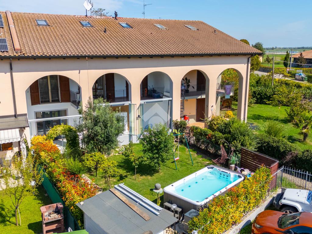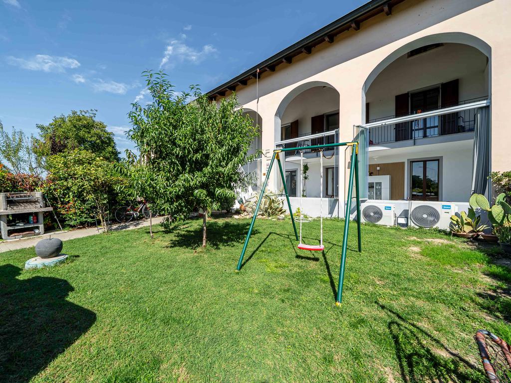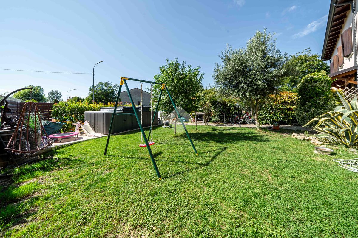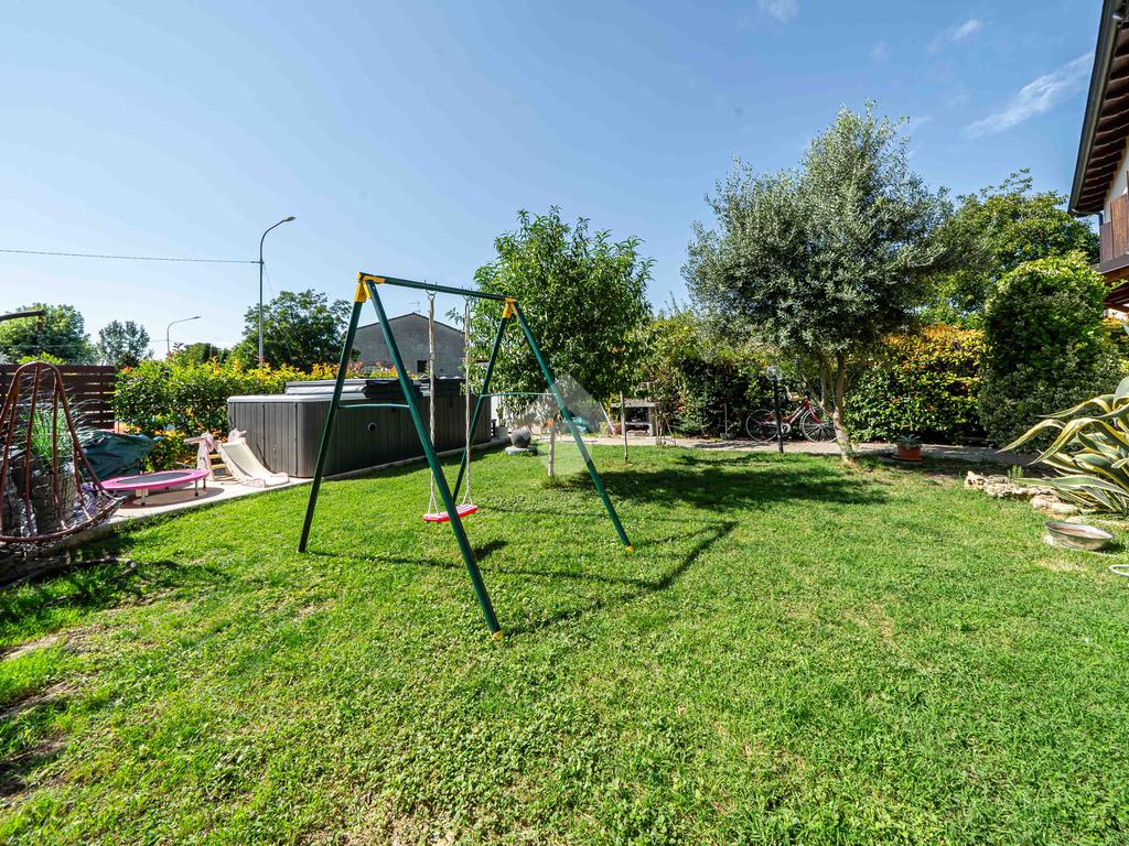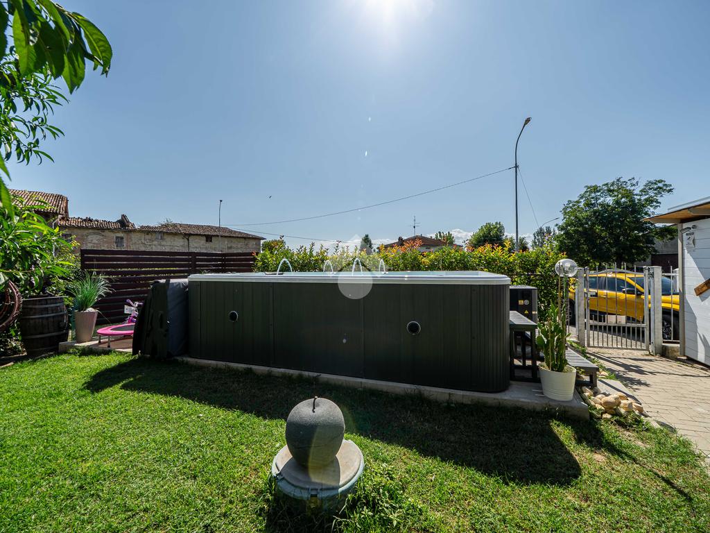 Il giardino privato è uno degli elementi che rendono ulteriormente appetibile questa proposta, oltre ad essere ben curato e riservato, ospita una piscina fuori terra con idromassaggio, nuoto controcorrente e acqua riscaldabile, perfetta per rilassarsi anche nelle stagioni meno calde.