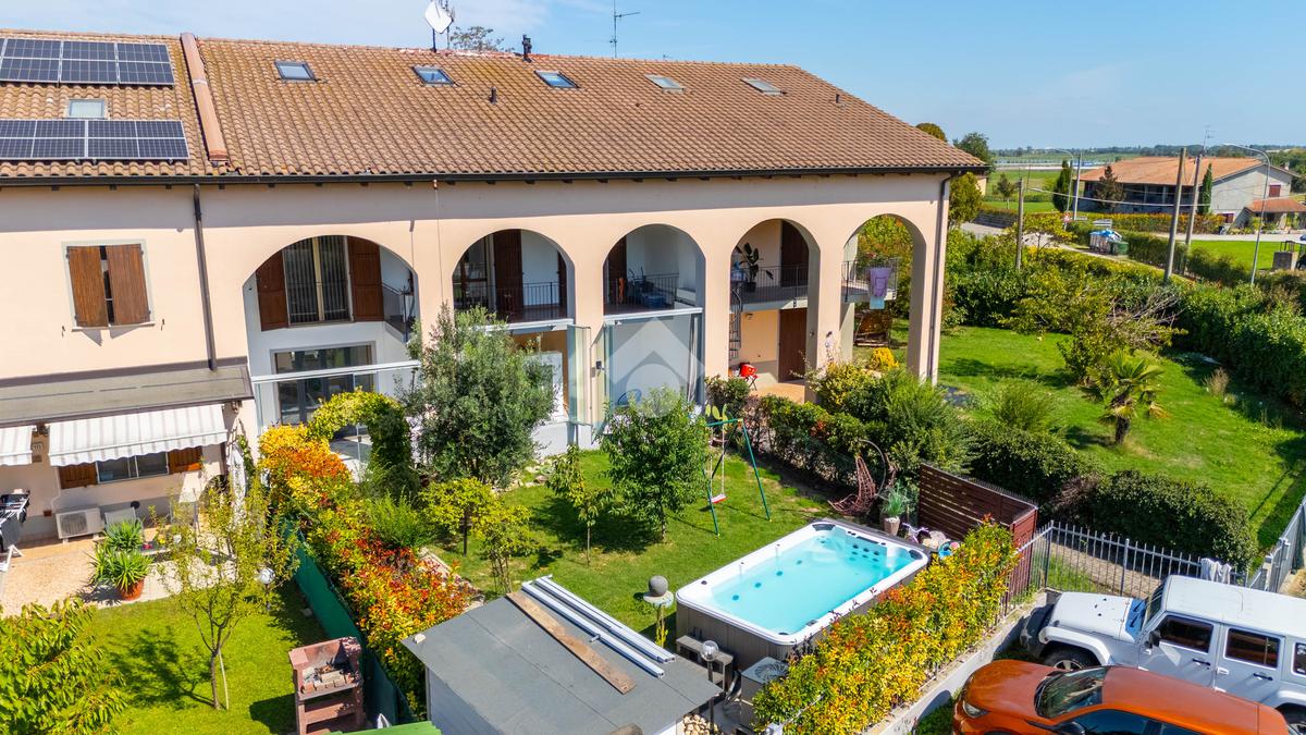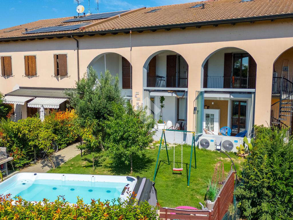 CAMPEGINE- VILLETTA A SCHIERA CON PORTICO ABITABILE E GIARDINO CON PISCINA.