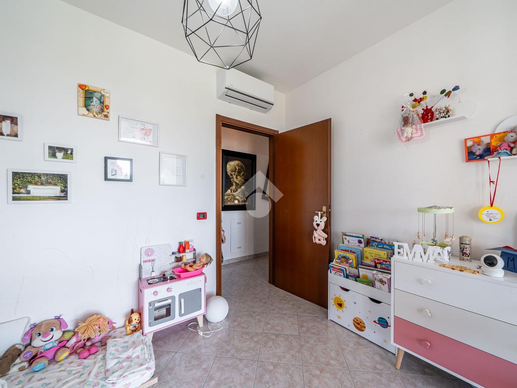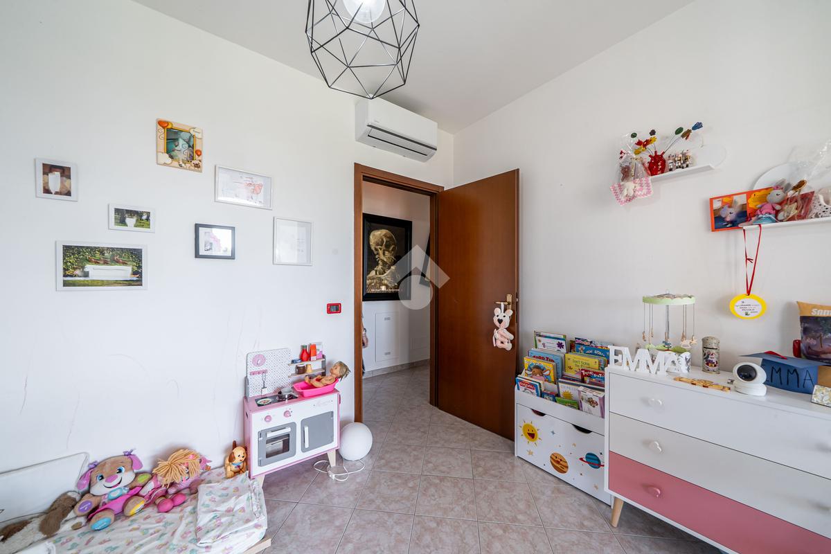 Al primo piano si sviluppa la zona notte composta da una camera matrimoniale, una camera singola ed un secondo bagno finestrato con vasca. Tutti gli ambienti si affacciano su una piacevole loggia coperta, anch'essa molto spaziosa e funzionale.