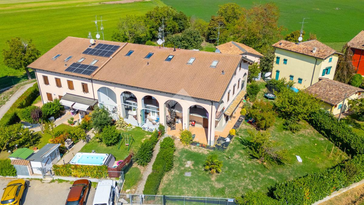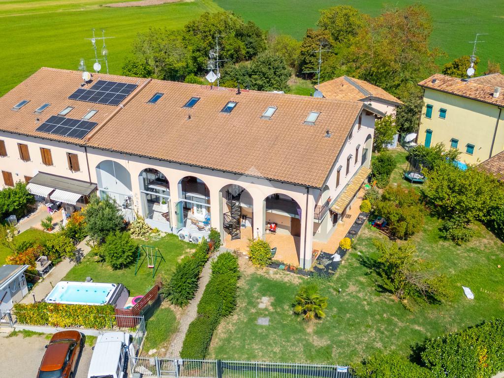 La casa fa parte di una schiera di poche unità abitatice, tutte ordinate e ben mantenute, e si distingue per il suo ottimo stato conservativo e per la cura dei dettagli, oltre che per la posizone tranquilla, siamo infatti immersi nel verde.