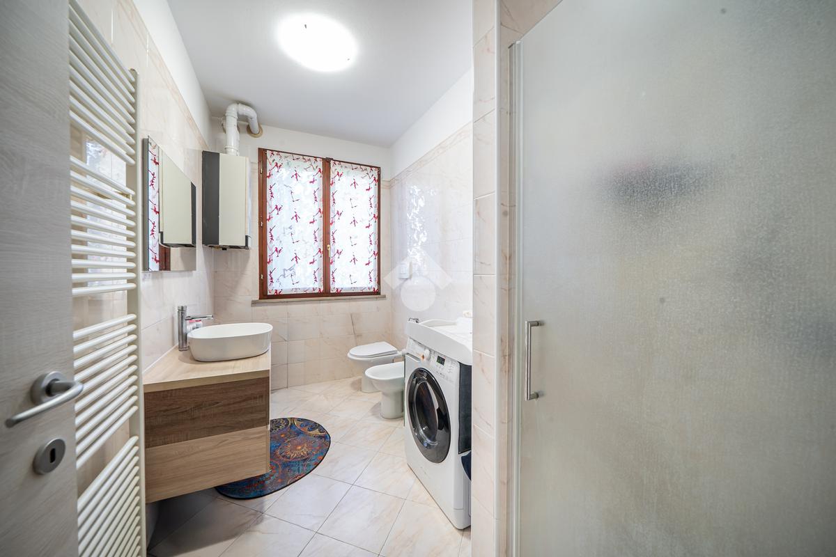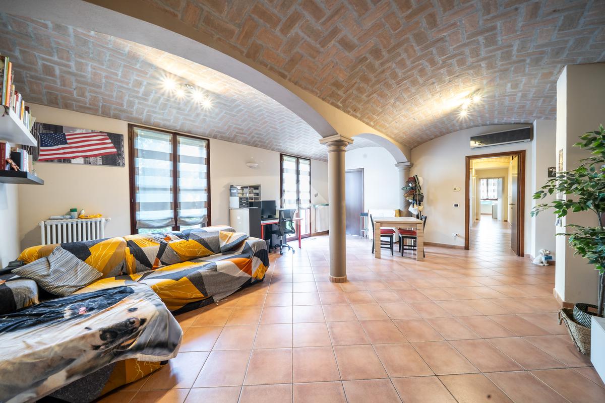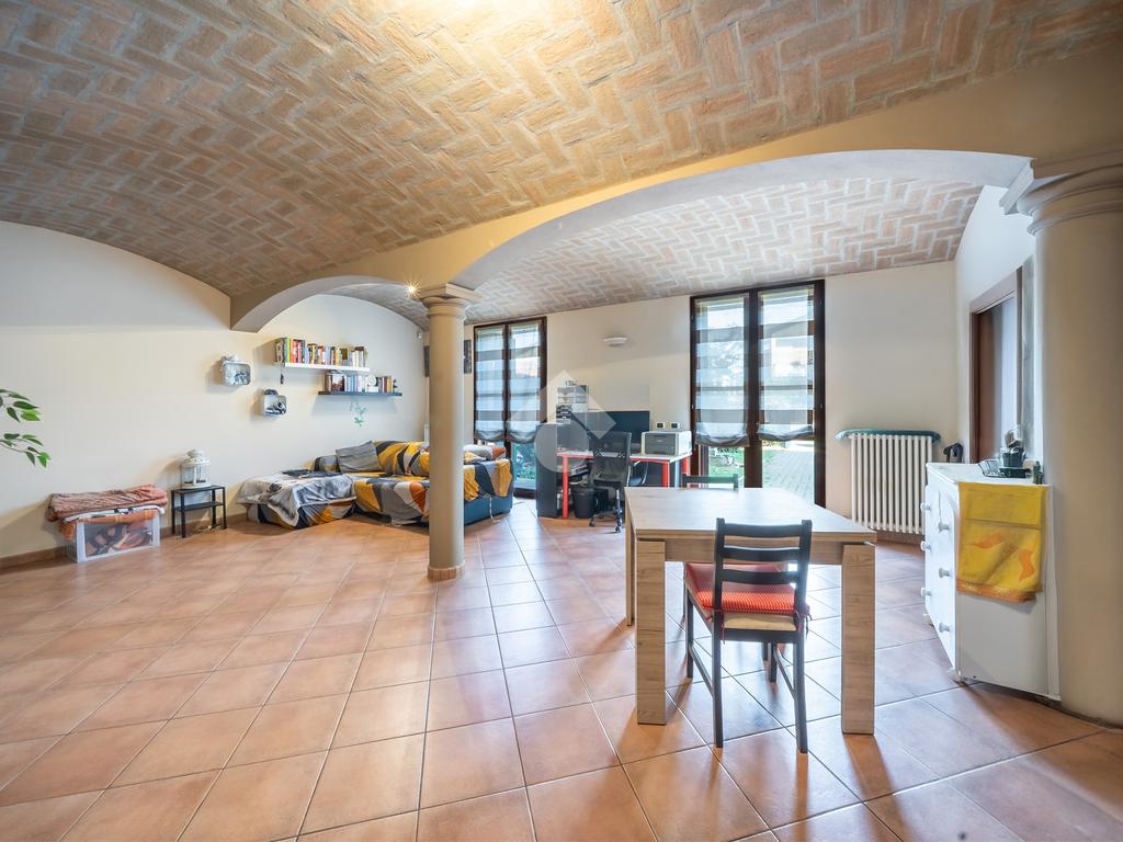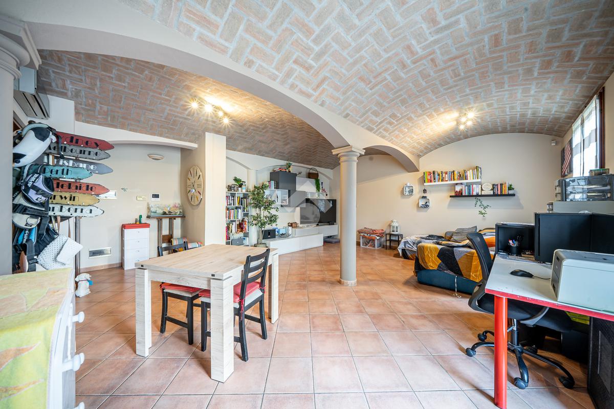 Entrando, ci accoglie una zona giorno ampia, luminosa e accogliente, composta da una sala doppia con ampie finestre che affacciano sul verde, perfetta per accogliere sia la sala da pranzo che lo spazio divani. Adiacente ma separata, troviamo una cucina abitabile, spaziosa e funzionale.
