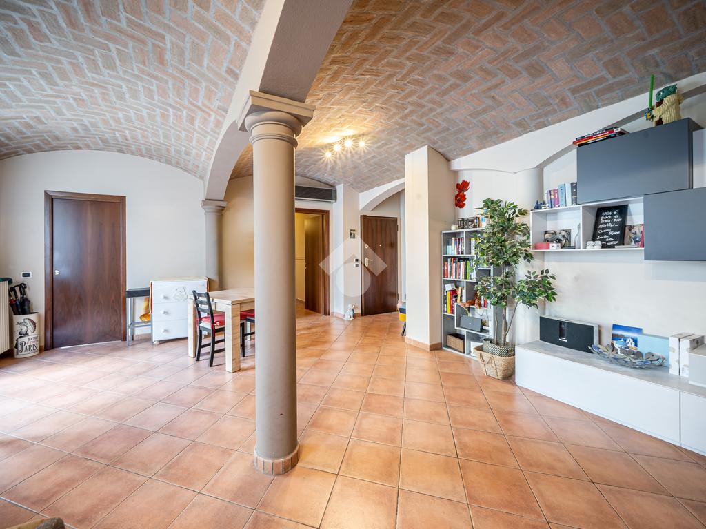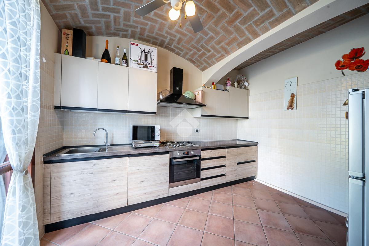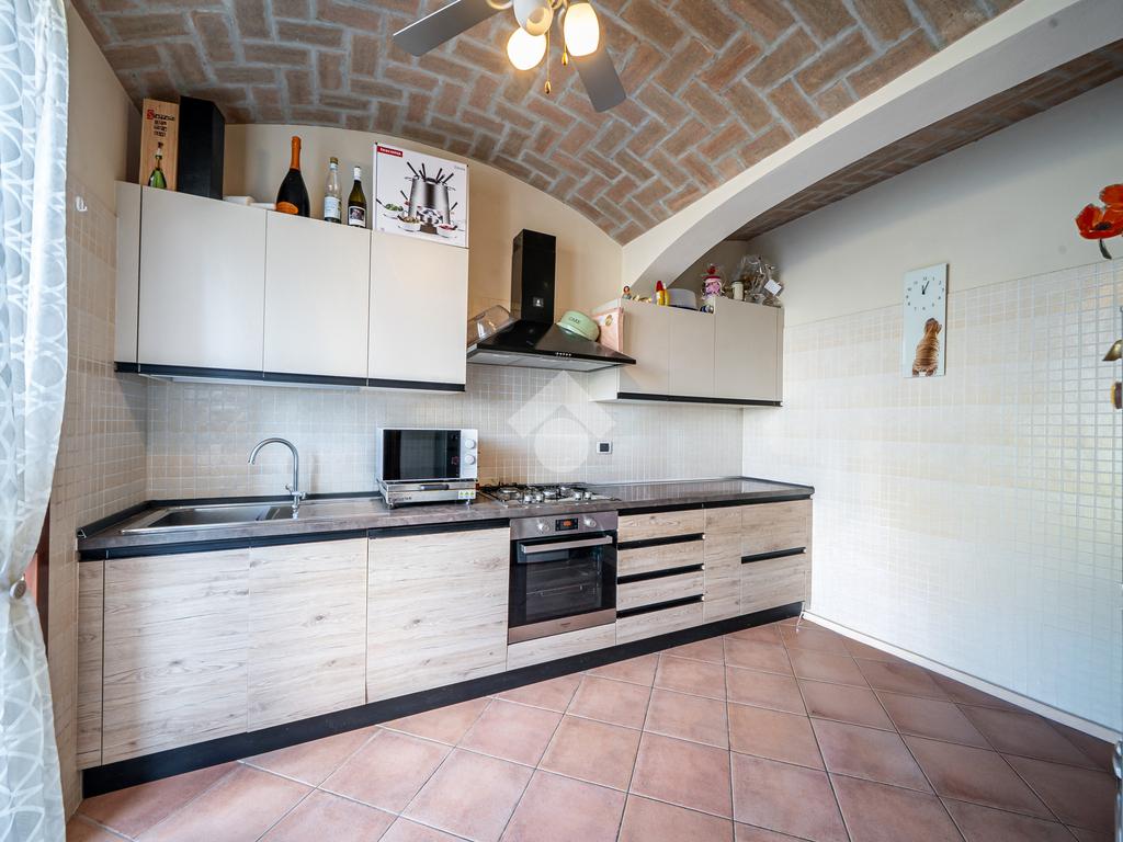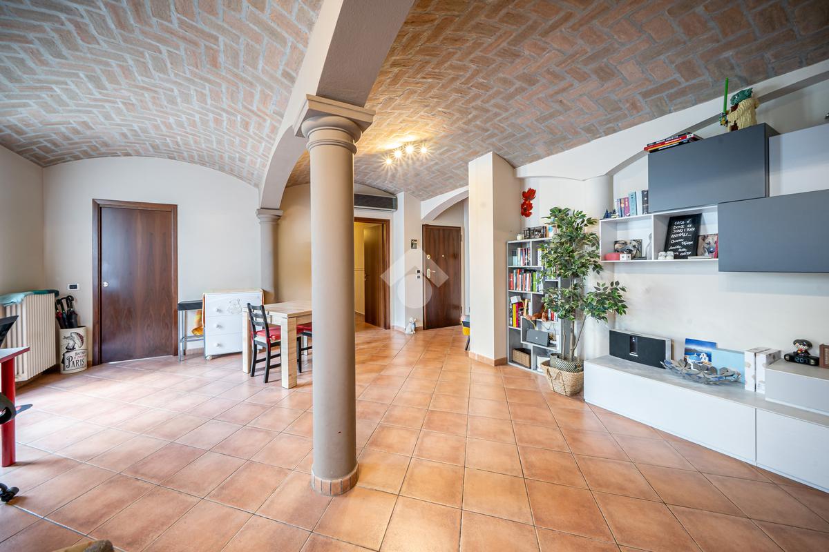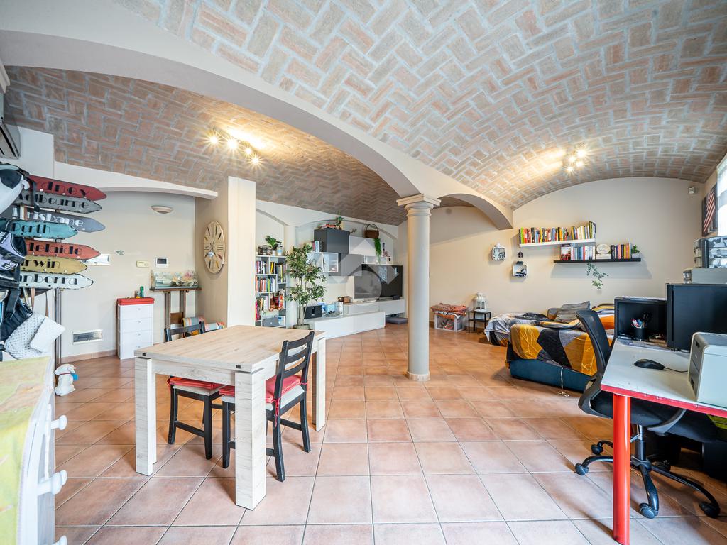Entrando, ci accoglie una zona giorno ampia, luminosa e accogliente, composta da una sala doppia con ampie finestre che affacciano sul verde, perfetta per accogliere sia la sala da pranzo che lo spazio divani. Adiacente ma separata, troviamo una cucina abitabile, spaziosa e funzionale.