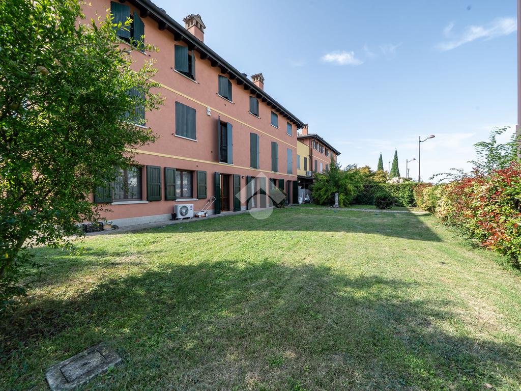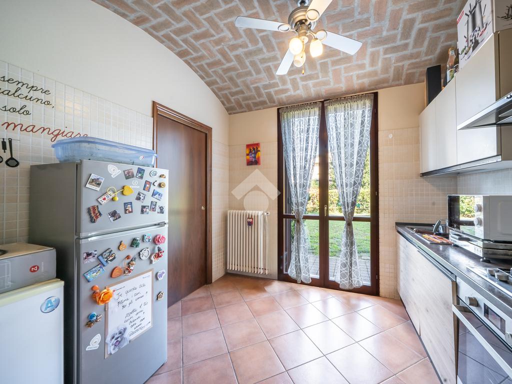 In un tranquillo e verde contesto residenziale a Calerno, frazione di Sant’Ilario d’Enza, proponiamo in vendita un quadrilocale con giardino.