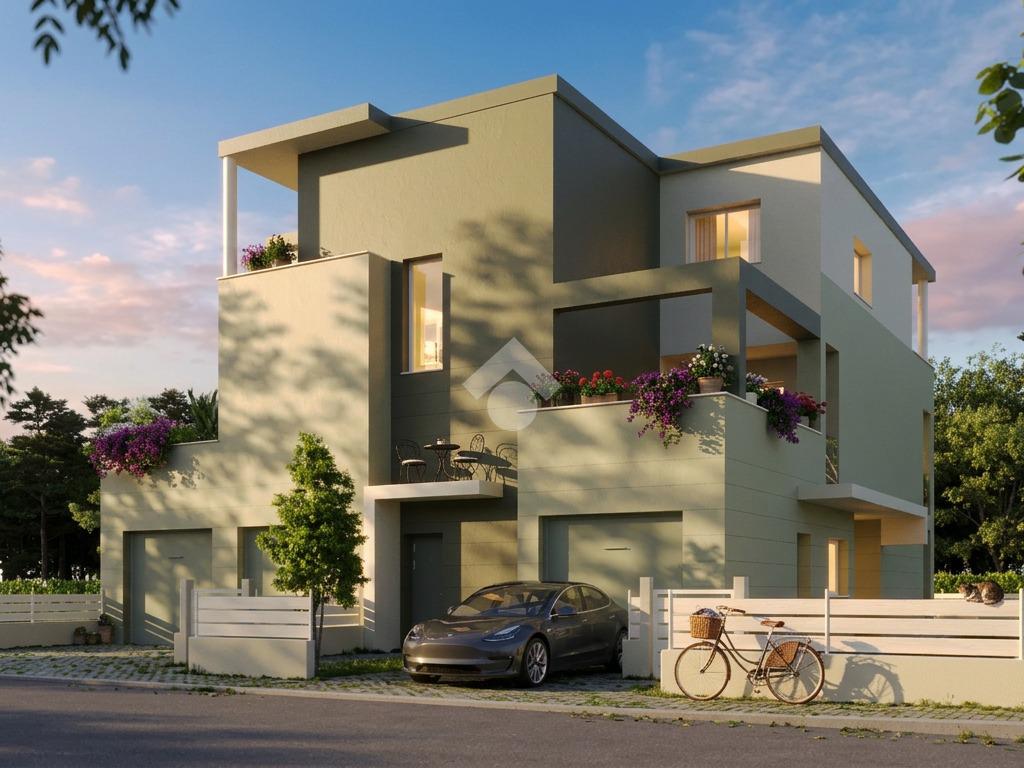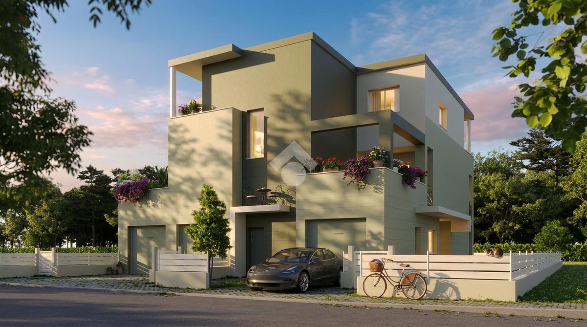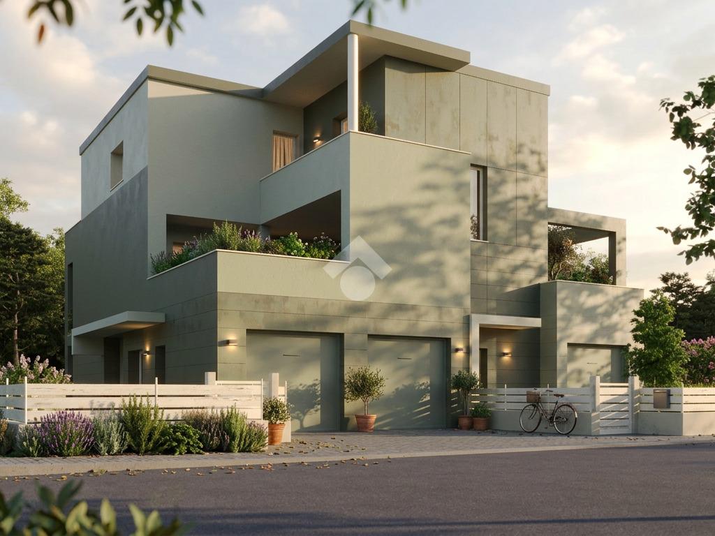 La costruzione è caratterizzata da un design moderno e linee eleganti, si inserisce perfettamente nelle tendenze contemporanee dell'abitare, con forme dinamiche e funzionali.