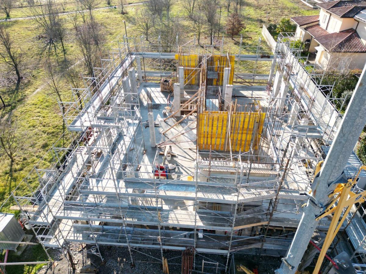 La costruzione è caratterizzata da un design moderno e linee eleganti, si inserisce perfettamente nelle tendenze contemporanee dell'abitare, con forme dinamiche e funzionali.