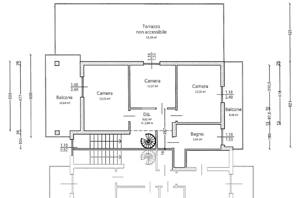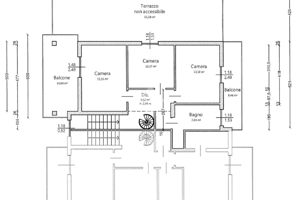 Il piano è completato da un secondo bagno finestrato e da due balconi, che donano luce naturale e affacci gradevoli agli ambienti.
