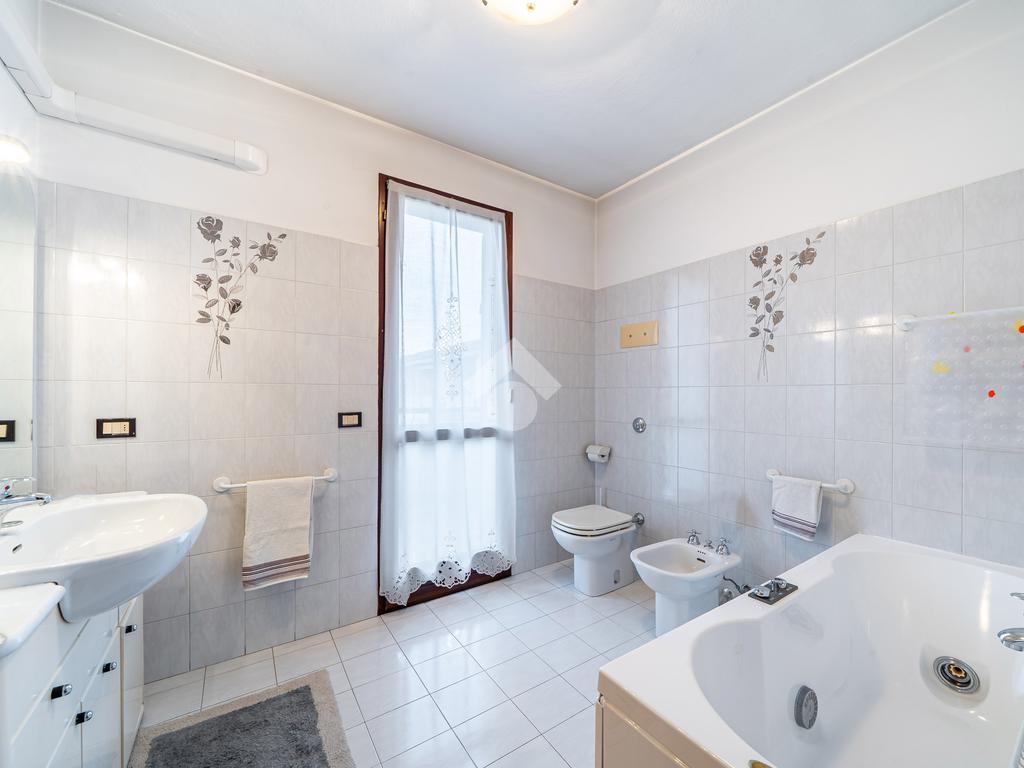 Al piano seminterrato, collegati internamente, troviamo i servizi accessori: una pratica cantina, un locale lavanderia/bagno e un generoso garage doppio in lunghezza con portone sezionale automatizzato.