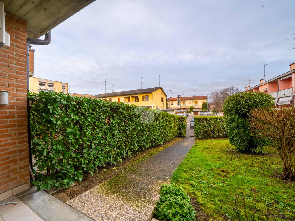 Dalla sala si accede direttamente al giardino privato sul retro, un’oasi di riservatezza per cene all’aperto o per il gioco dei bambini.